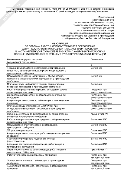 - 519Информация об объемах работы, используемых для определения затрат компании пригородных пассажирских перевозок в части железнодорожных перевозок пассажиров в пригородном сообщении по соответствующему субъекту Российской Федерации