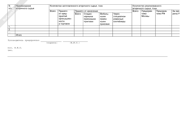 - 501Информация об объемах выполненных работ по сбору, переработке и реализации отходов, содержащих вторичное сырье (отчет о заготовке и реализации вторичного сырья)