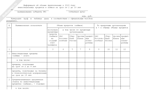 - 512Информация об объеме привлеченных в 2010 году инвестиционных кредитов и займов на срок от 2 до 10 лет (приложение к отчету о расходах бюджета субъекта РФ (местного бюджета), источником финансового обеспечения которых является субсидия из федерального бюджета)