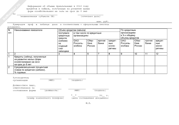 - 513Информация об объеме привлеченных в 2010 году кредитов и займов, полученных на развитие малых форм хозяйствования на селе на срок до 8 лет (приложение к отчету о расходах бюджета субъекта РФ (местного бюджета), источником финансового обеспечения которых является субсидия из федерального бюджета)