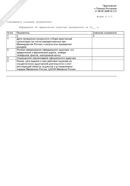 - 506Информация об официальном аудиторе предприятия, находящегося в сфере ведения и координации Роспрома. Форма № I/3