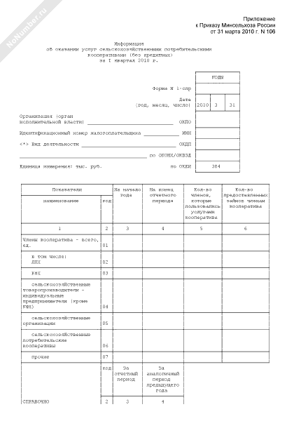- 510Информация об оказании услуг сельскохозяйственными потребительскими кооперативами (без кредитных) за I квартал 2010 г. Форма № 1-спр