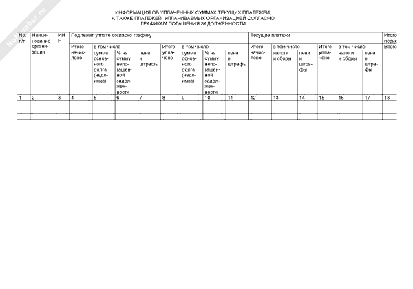 - 527Информация об уплаченных суммах текущих платежей, а также платежей, уплачиваемых организацией согласно графикам погашения задолженности
