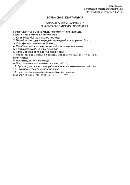 - 661Оперативная информация о капитальном ремонте скважин. Форма № ДН52 (квартальная)