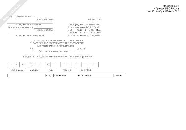 - 666Оперативная статистическая информация о состоянии преступности и результатах расследования преступлений. Форма № 1-А