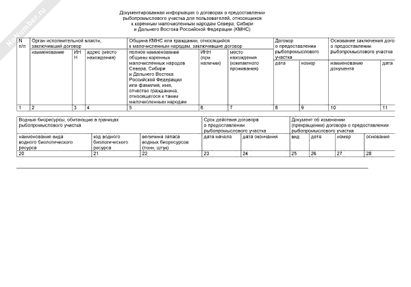 - 669Права на добычу (вылов) водных биоресурсов, отнесенных к объектам рыболовства. Документированная информация о договорах о предоставлении рыбопромыслового участка для пользователей, относящихся к коренным малочисленным народам Севера, Сибири и Дальнего Востока Российской Федерации (КМНС). Форма № 4.1.2.-грр