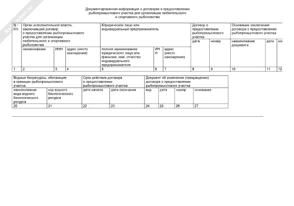 - 670Права на добычу (вылов) водных биоресурсов, отнесенных к объектам рыболовства. Документированная информация о договорах о предоставлении рыбопромыслового участка для организации любительского и спортивного рыболовства. Форма № 4.1.3.-грр