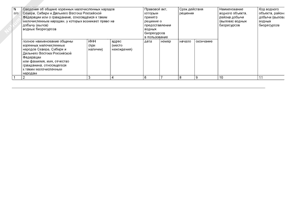 - 676Права на добычу (вылов) водных биоресурсов, отнесенных к объектам рыболовства. Документированная информация о решении о предоставлении водных биоресурсов, отнесенных к объектам рыболовства, в пользование для осуществления рыболовства в целях обеспечения традиционного образа жизни и осуществления традиционной хозяйственной деятельности коренных малочисленных народов Севера, Сибири и Дальнего Востока Российской Федерации. Форма № 4.2.6.-грр