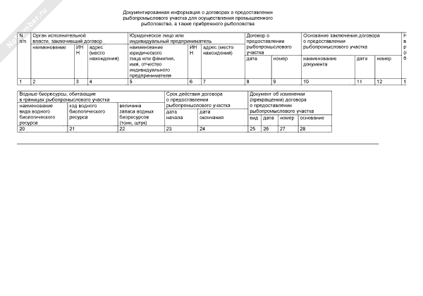 - 668Права на добычу (вылов) водных биоресурсов, отнесенных к объектам рыболовства. Документированная информация о договорах о предоставлении рыбопромыслового участка для осуществления промышленного рыболовства, а также прибрежного рыболовства. Форма № 4.1.1.-грр