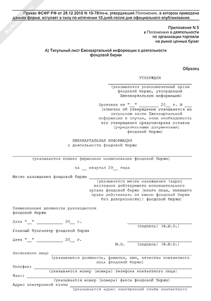 - 727Ежеквартальная информация о деятельности фондовой биржи