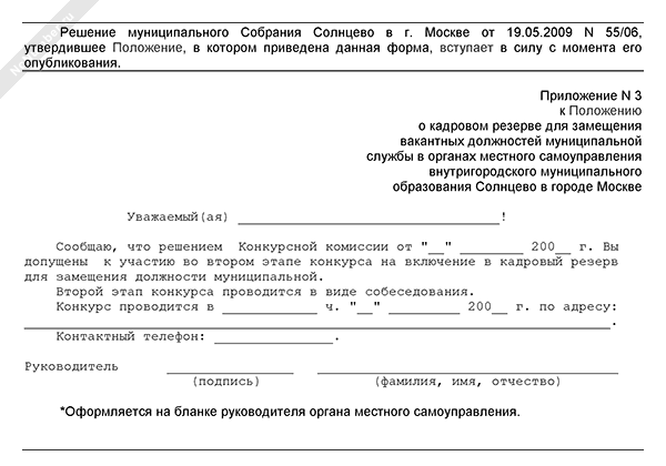 - 734Информация о допуске к участию во втором этапе конкурса на включение в кадровый резерв для замещения должности муниципальной службы в органах местного самоуправления внутригородского муниципального образования Солнцево в городе Москве