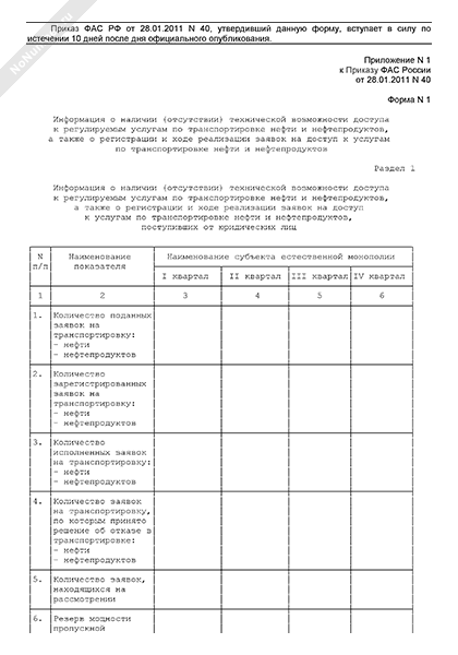 - 736Информация о наличии (отсутствии) технической возможности доступа к регулируемым услугам по транспортировке нефти и нефтепродуктов, а также о регистрации и ходе реализации заявок на доступ к услугам по транспортировке нефти и нефтепродуктов (форма № 1)