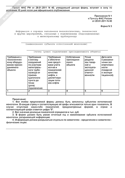 - 737Информация о порядке выполнения технологических, технических и других мероприятий, связанных с подключением (подсоединением) к магистральному трубопроводу (форма № 3)
