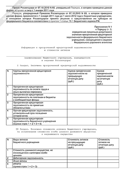 - 738Информация о просроченной кредиторской задолженности и стоимости активов бюджетного учреждения, находящегося в ведении Росавтодора