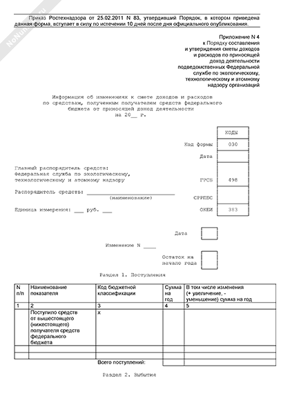 - 753Информация об изменениях к смете доходов и расходов по средствам, полученным получателем средств федерального бюджета от приносящей доход деятельности организации, подведомственной Федеральной службе по экологическому, технологическому и атомному надзору