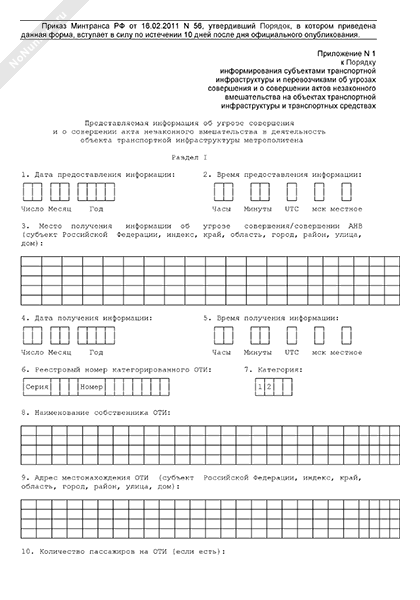 - 760Представляемая информация об угрозе совершения и о совершении акта незаконного вмешательства в деятельность объекта транспортной инфраструктуры метрополитена