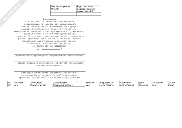- 129Информация о кандидатах на должность единоличного исполнительного органа, его заместителей, членов коллегиального исполнительного органа кредитной организации, главного бухгалтера, заместителей главного бухгалтера кредитной организации, руководителей, заместителей руководителя, главного бухгалтера, заместителей главного бухгалтера филиала кредитной организации, в отношении которых территориальным учреждением принято решение об отказе в согласовании кандидатур на должности руководителей