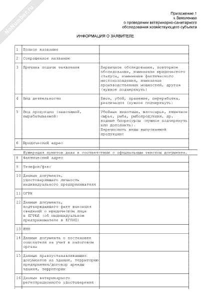 - 122Информация о заявителе (приложение к заявлению о проведении ветеринарно-санитарного обследования хозяйствующего субъекта)