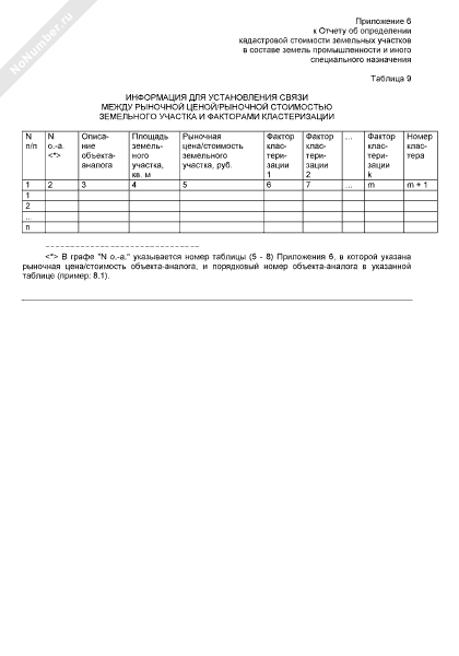 Информация для установления связи между рыночной ценой/рыночной стоимостью земельного участка, отнесенного ко второй группе земель промышленности и иного специального назначения, и факторами кластеризации (рекомендуемый образец заполнения)
