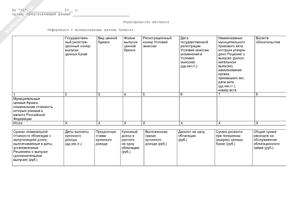 Информация о муниципальных ценных бумагах (рекомендуемый образец заполнения)