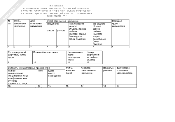 Информация о нарушениях законодательства Российской Федерации в области рыболовства и сохранения водных биоресурсов, допущенных при осуществлении рыболовства с применением плавсредств (форма № 1)