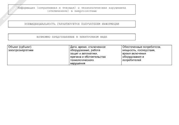 Информация (оперативная и текущая) о технологических нарушениях (отключениях) в энергосистеме