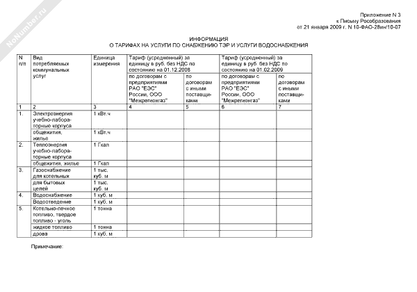 Информация о тарифах на услуги по снабжению ТЭР и услуги водоснабжения