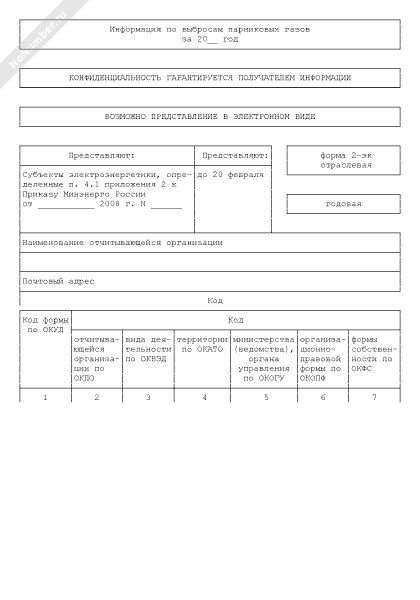 - Номер типовой формы 2-ЭК ОТРАСЛЕВАЯ