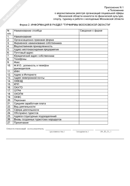 Информация в раздел «Турфирмы Московской области» Реестра организаций туристской индустрии Московской области (форма № 2)