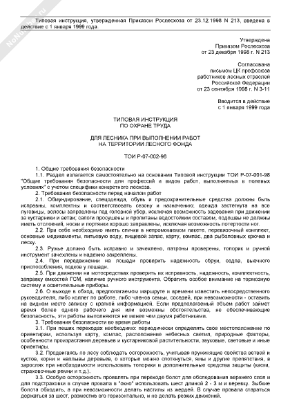 - 236Типовая инструкция по охране труда для лесника (при выполнении работ на территории лесного фонда)