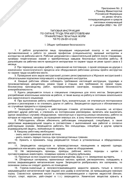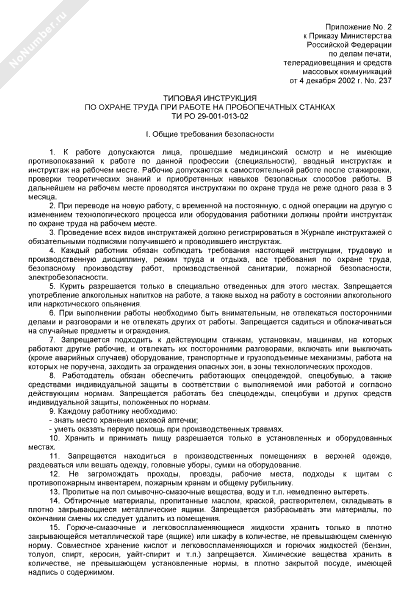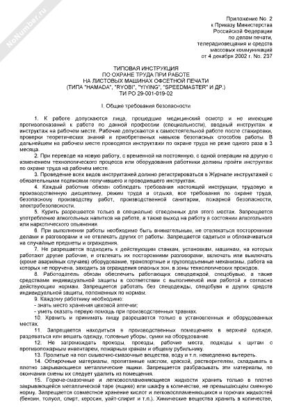 - 229Типовая инструкция по охране труда при работе на машинах трафаретной печати ТИ РО 29-001-022-02