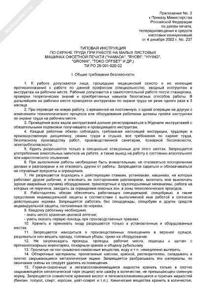 - 231Типовая инструкция по охране труда при работе на малых листовых машинах офсетной печати («Hamada», «Ryobi», «Yiying», «Gronhi», «Toko offset» и др.) ТИ РО 29-001-020-02