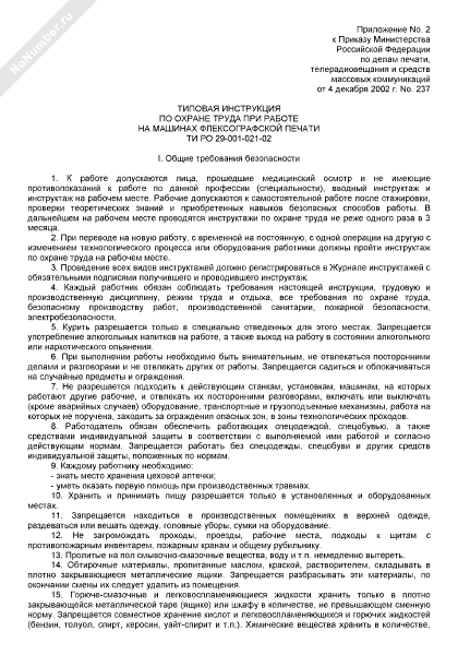 - 228Типовая инструкция по охране труда при работе на машинах флексографской печати ТИ РО 29-001-021-02