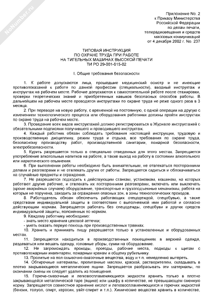 - 233Типовая инструкция по охране труда при работе на тигельных машинах высокой печати ТИ РО 29-001-015-02