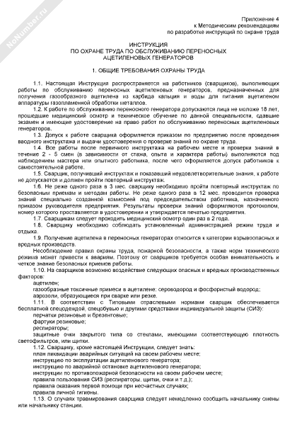 Инструкция по охране труда по обслуживанию переносных ацетиленовых генераторов (рекомендуемый образец заполнения)