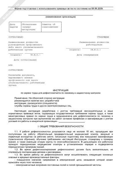 Инструкция по охране труда для дефектоскописта по газовому и жидкостному контролю (рекомендуемый образец заполнения)