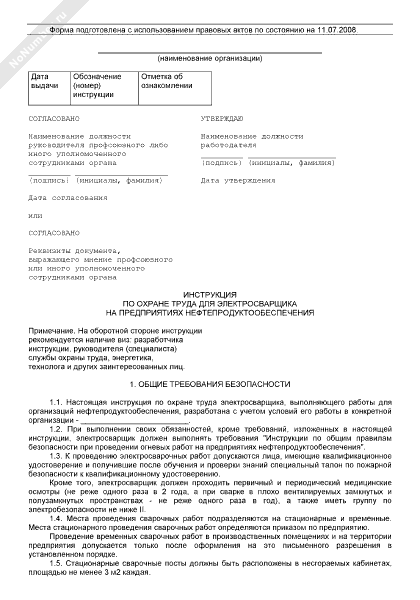 Инструкция по охране труда для электросварщика на предприятиях нефтепродуктообеспечения (рекомендуемый образец заполнения)