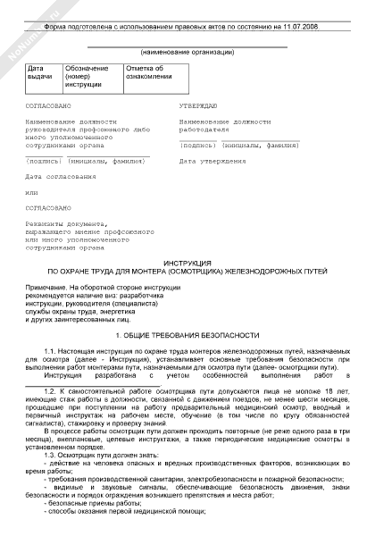 Инструкция по охране труда для монтера (осмотрщика) железнодорожных путей