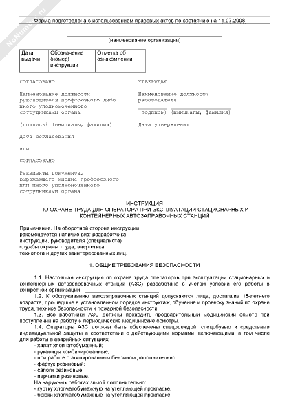 Инструкция по охране труда для оператора при эксплуатации стационарных и контейнерных автозаправочных станций (рекомендуемый образец заполнения)