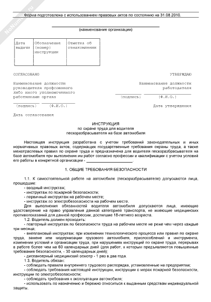 Инструкция по охране труда для водителя пескоразбрасывателя на базе автомобиля (рекомендуемый образец заполнения)