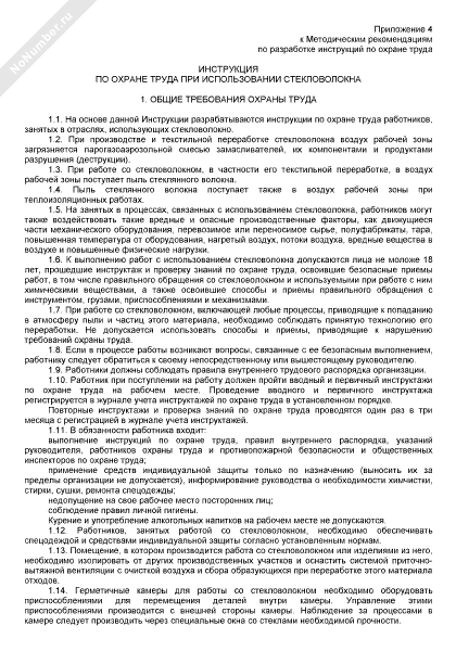 Инструкция по охране труда при использовании стекловолокна (рекомендуемый образец заполнения)