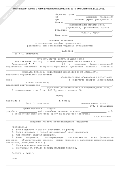 - 339Исковое заявление о возмещении ущерба, причиненного работником при исполнении трудовых обязанностей