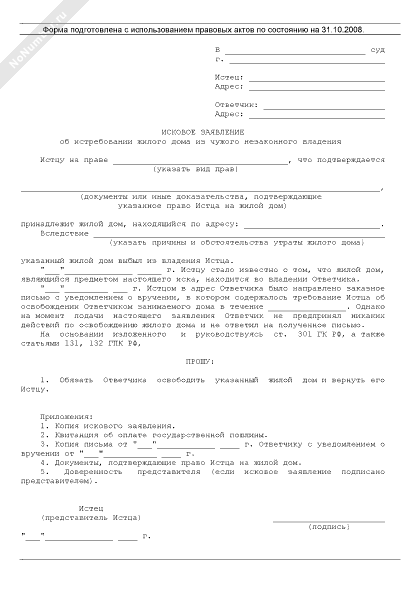 - 331Исковое заявление об истребовании жилого дома из чужого незаконного владения