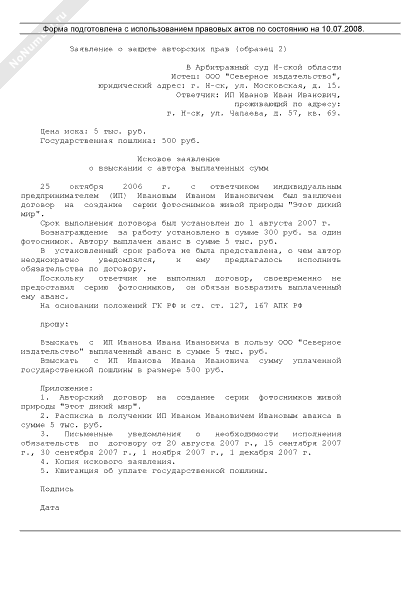 - 407Исковое заявление о взыскании с автора выплаченных сумм