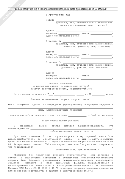 - 451Исковое заявление акционерного общества (акционера) о признании сделки, в совершении которой имеется заинтересованность, недействительной