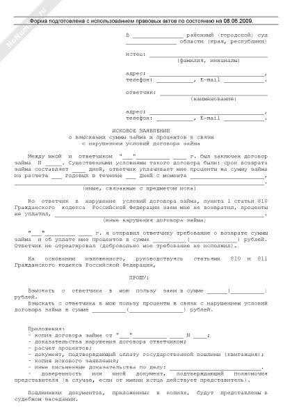 - 454Исковое заявление о взыскании суммы займа и процентов в связи с нарушением условий договора займа