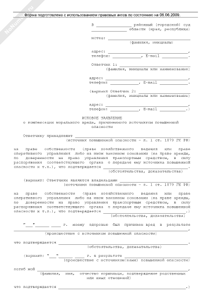 - 486Исковое заявление о компенсации морального вреда, причиненного источником повышенной опасности