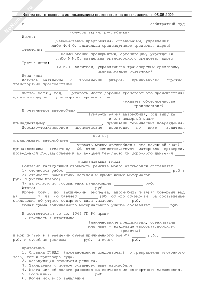 - 565Исковое заявление о возмещении ущерба, причиненного дорожно-транспортным происшествием