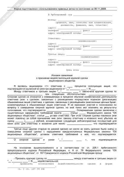 - 658Исковое заявление о признании недействительной крупной сделки акционерного общества