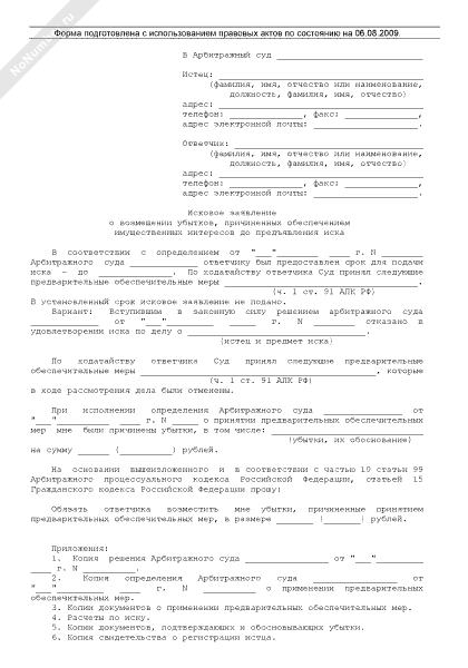 - 642Исковое заявление о возмещении убытков, причиненных обеспечением имущественных интересов до предъявления иска